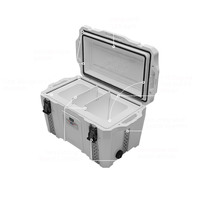 Embark on a journey with the Pilot® Cooler Model 50/80, where cutting-edge patented features and advanced technology redefine your outdoor experience across all seasons.