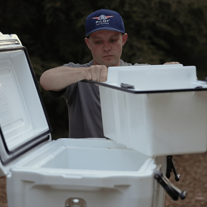 Experience the revolutionary Pilot® Cooler — the world's only "GEN X" ultra-premium ice chest cooler with two sizes in one! Thanks to our patented dual chamber design, effortlessly switch from 53 qt. to 85 qt. in under 30 seconds.